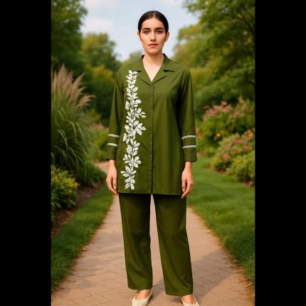 Handwork Co-ord Set Olive Green Top With Pant 38