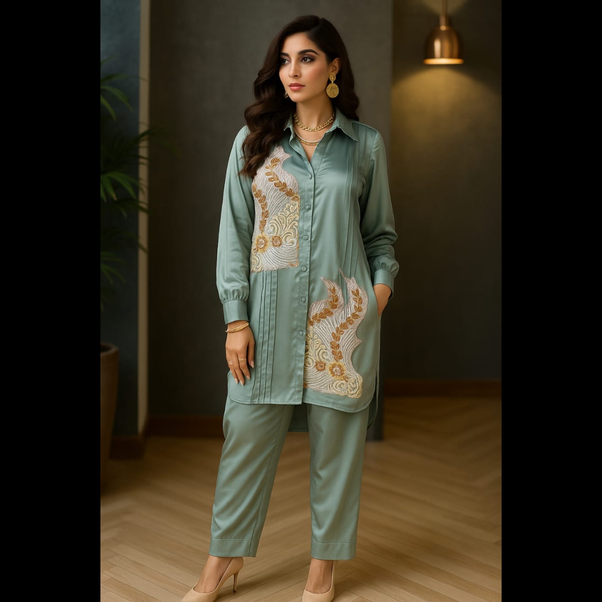 Handwork Co-ord Set Sea Green Top With Pant 38