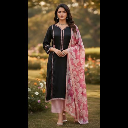 Black Floral Embroidery Top With Pant And Dupatta 46