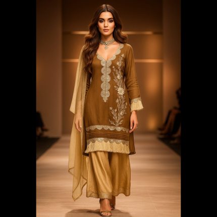 Brown And Gold Embroidered Sharara/Skirt Suit 48