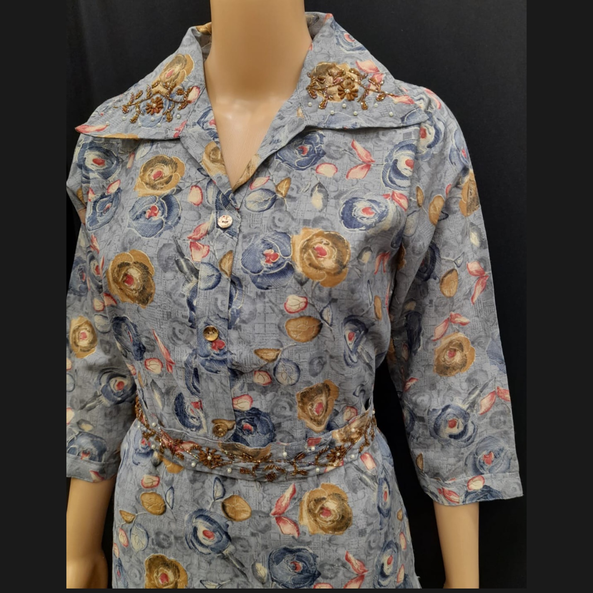 Available in sizes S and M, this co-ord set is tailored to flatter different body types. Perfect for those who appreciate classic elegance with a modern twist, this blue and beige floral co-ord set brings together style, quality, and sophistication in a truly stunning piece.