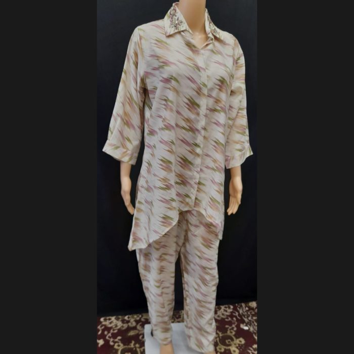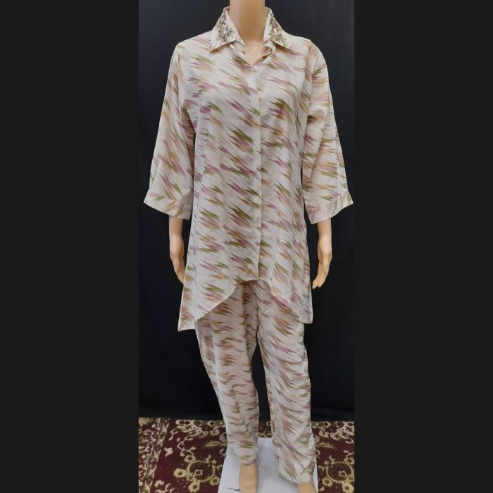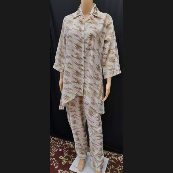 Co-ord Set – Off-white With A Splash Of Mauve, Brown And Green 42
