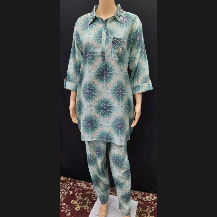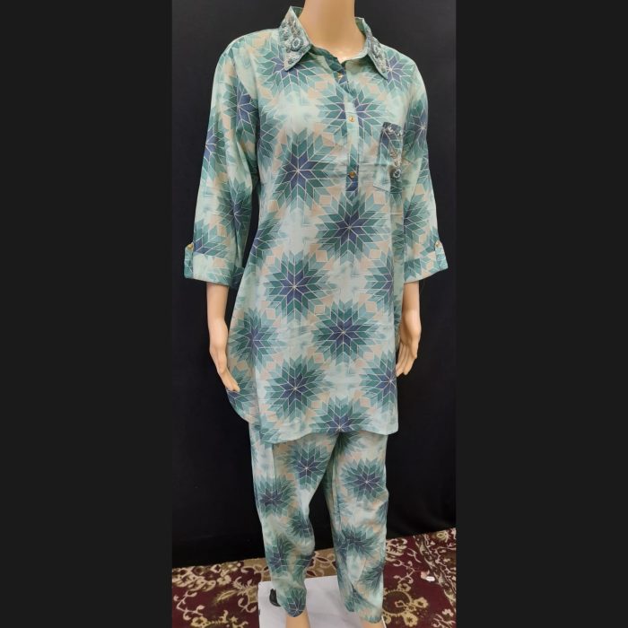 Be the first to review “Co-ord Set – Shaded Aquamarine Blue Geometric Design 42”
