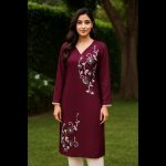 Unveil timeless elegance with the Wine-Colored Hand-Embroidered Top and Off-White Pant Set, crafted from premium imported fabric for a luxurious feel. The rich wine-hued top is adorned with intricate hand embroidery, offering a perfect blend of sophistication and artistry. Paired with sleek off-white pants, this ensemble creates a stunning contrast that exudes effortless style. The lightweight, breathable fabric ensures all-day comfort, while the modern silhouette makes it ideal for both casual outings and special occasions. Perfect for those who appreciate a balance of tradition and contemporary fashion, this set is designed to turn heads and leave a lasting impression.