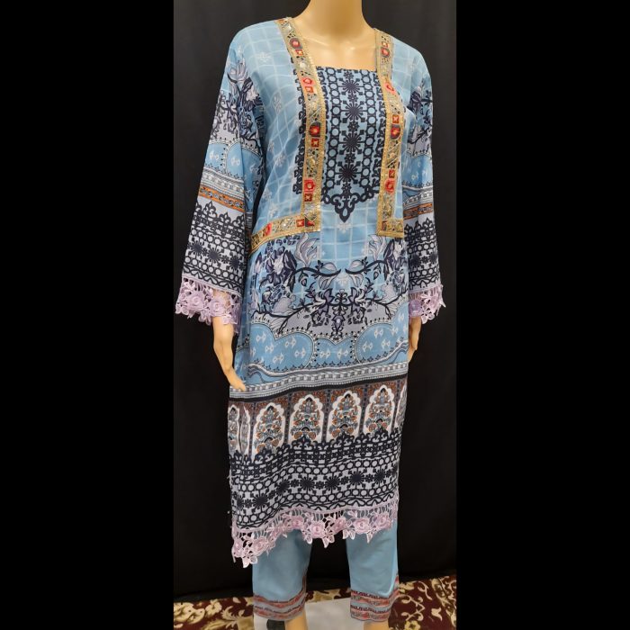Elevate your style with this exquisitely designed Pakistani-style ready-to-wear suit, tailored to perfection for ultimate comfort and elegance. Crafted from premium-quality cotton and lawn fabric, this suit is lightweight, breathable, and ideal for festive occasions or casual outings alike.