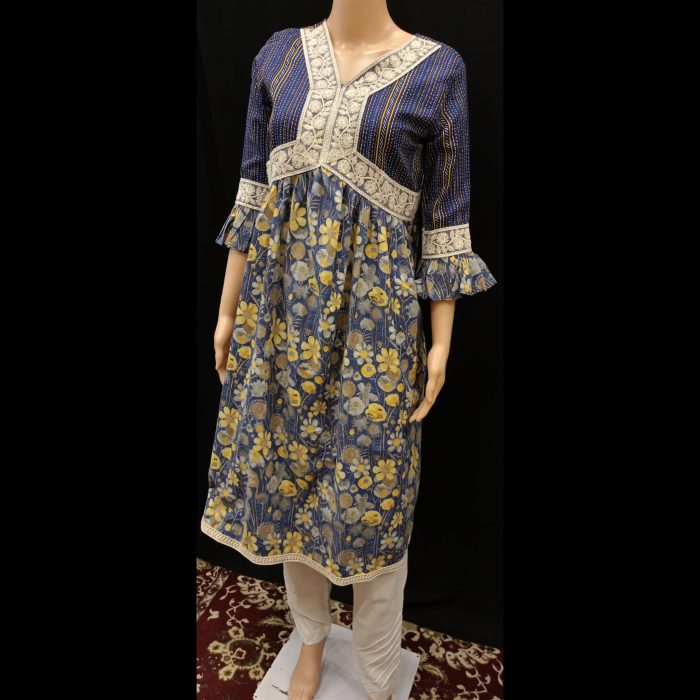Fancy Neckline with Piping Finish: The elegant neckline, enhanced with piping and a touch of sophistication, ensures a refined look.