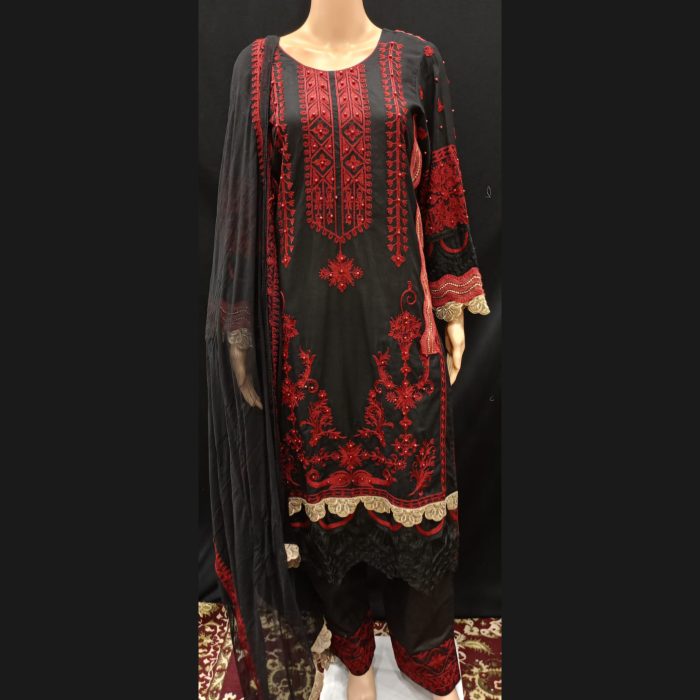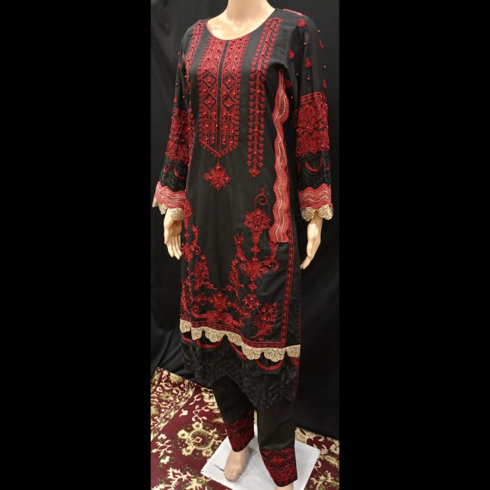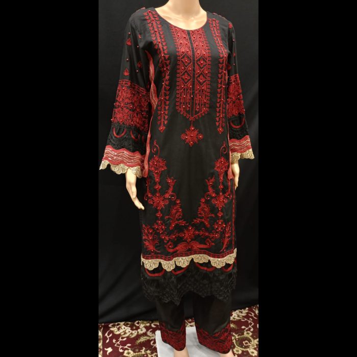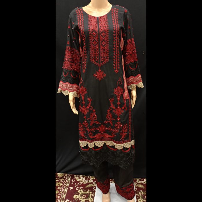 Be the first to review “Black And Red Cotton Embroidered Suit 42”