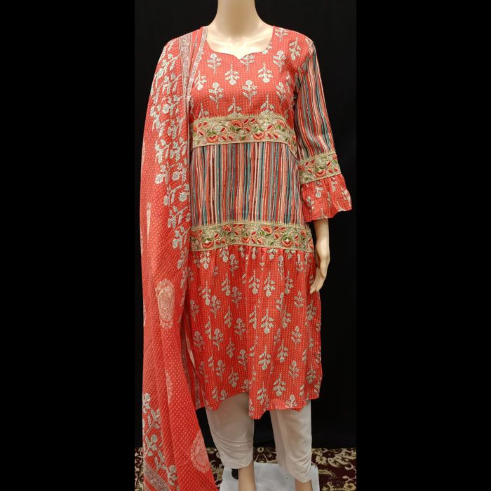Elevate your style with this exquisitely designed Pakistani-style ready-to-wear suit, tailored to perfection for ultimate comfort and elegance. Crafted from premium-quality cotton and lawn fabric, this suit is lightweight, breathable, and ideal for festive occasions or casual outings alike.