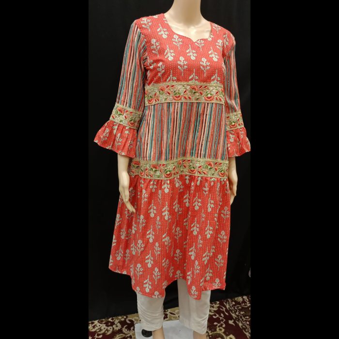 Fancy Neckline with Piping Finish: The elegant neckline, enhanced with piping and a touch of sophistication, ensures a refined look.