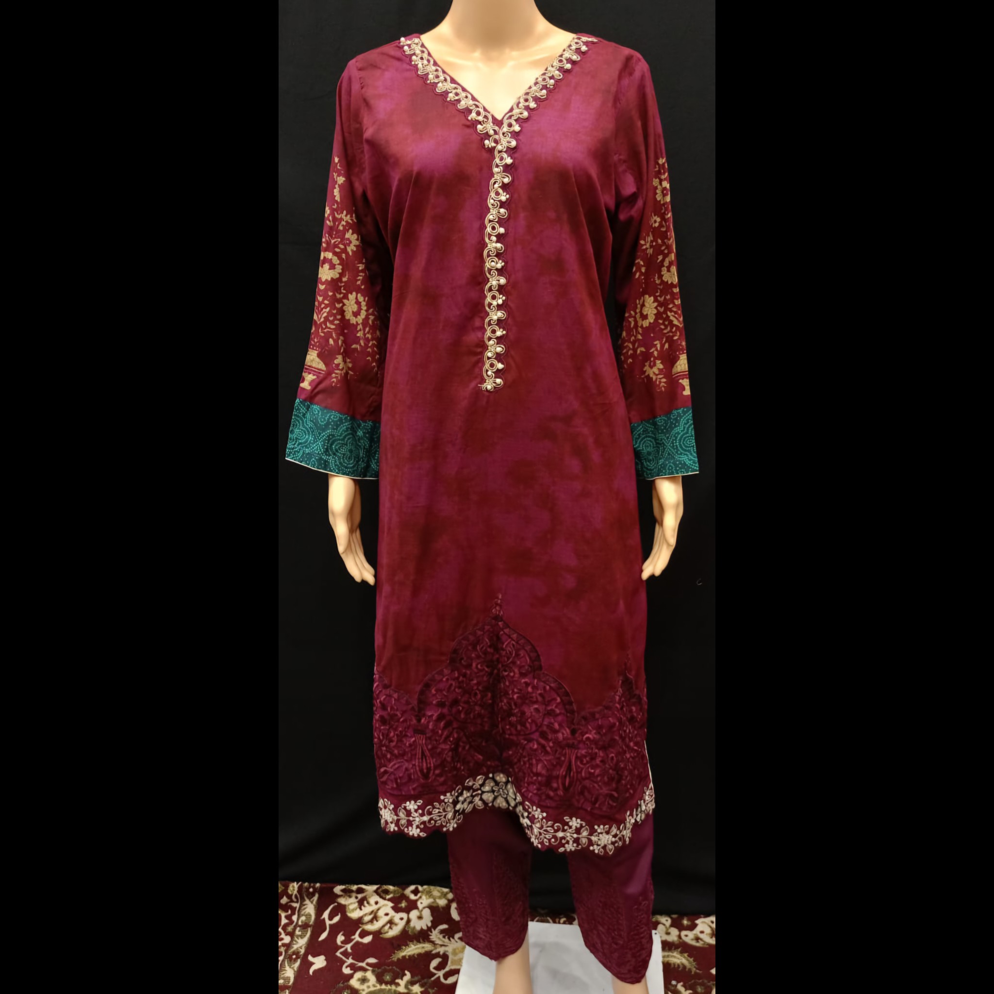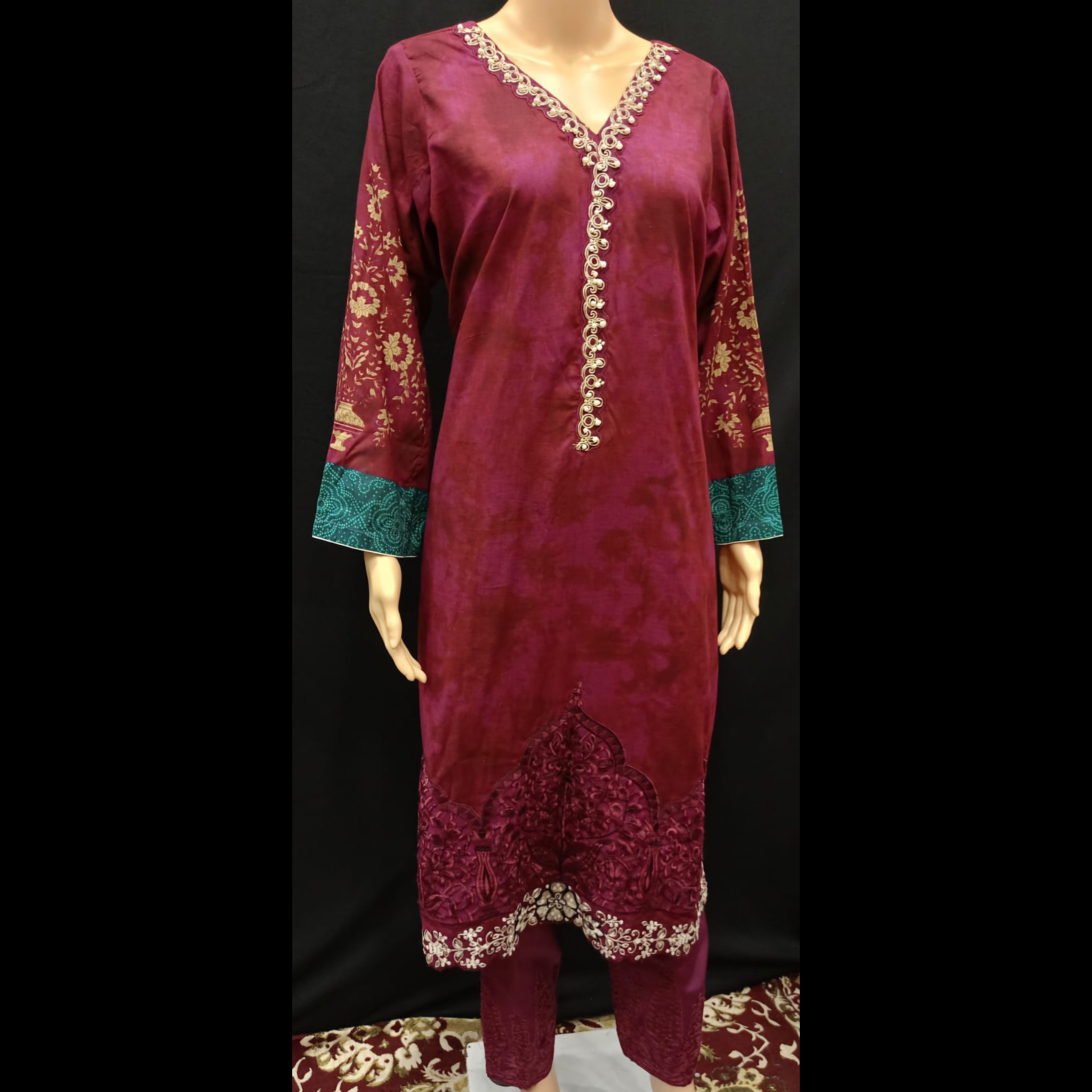 Be the first to review “Carmine Maroon Cotton Chikankari Embroidered Suit 44” Cancel reply