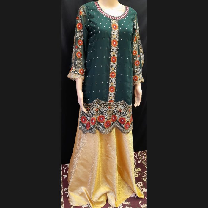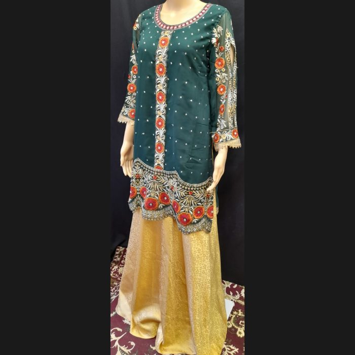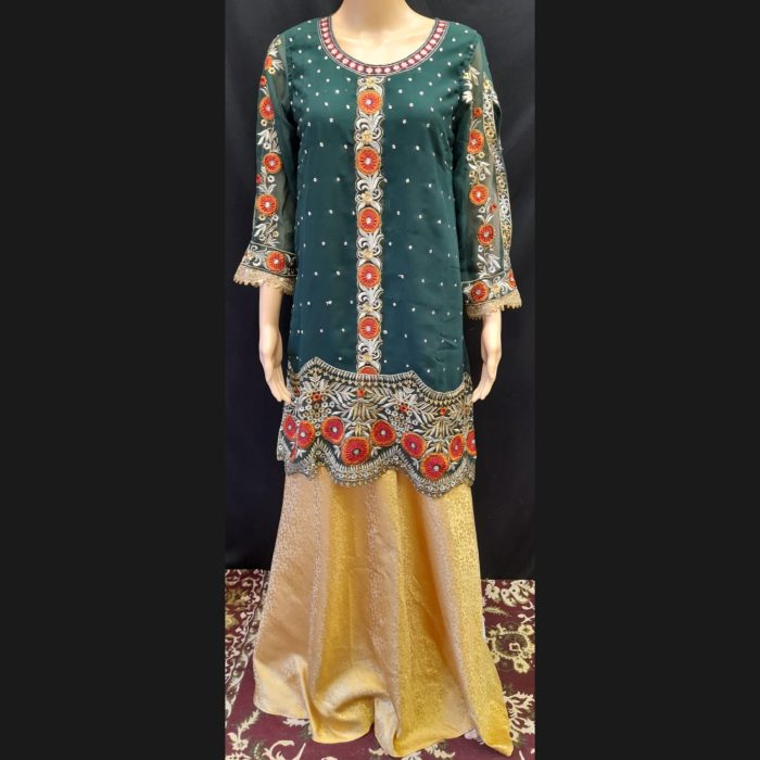 Dark Green Embroidered and Golden Sharara Suit 40