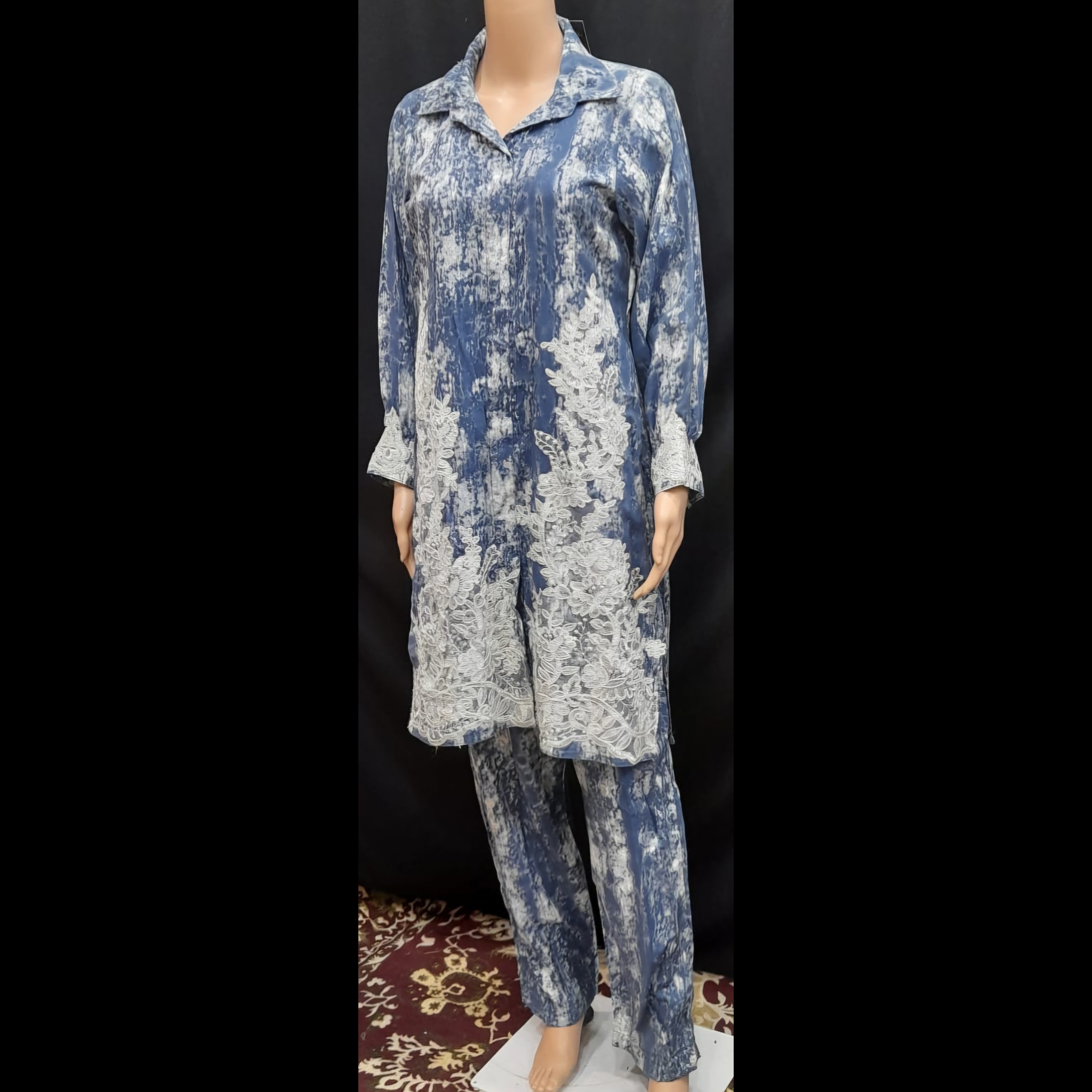 Be the first to review “Denim Blue Embroided Patchwork Co-ord Set 40” Cancel reply