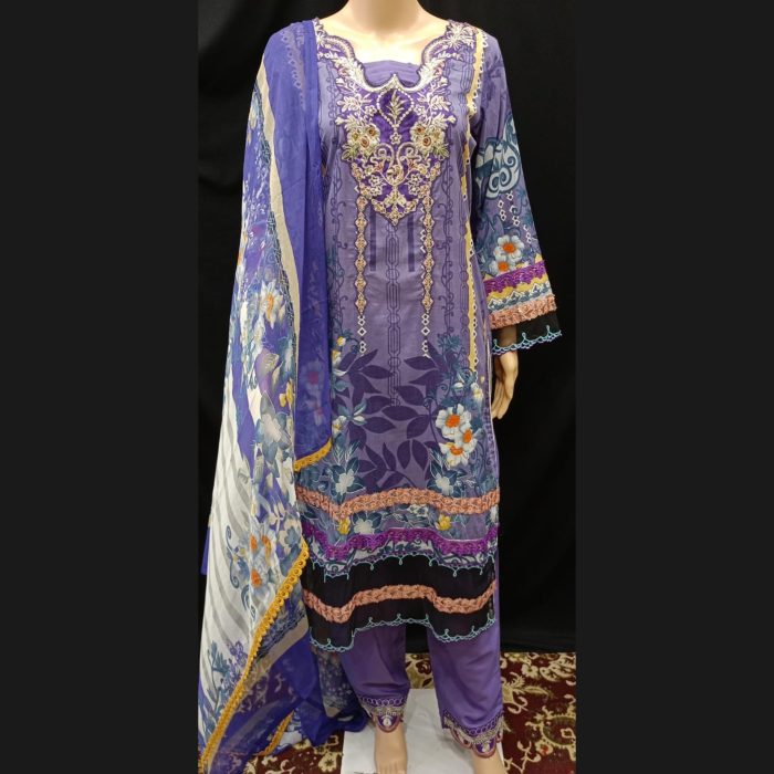 Elevate your style with this exquisitely designed Pakistani-style ready-to-wear suit, tailored to perfection for ultimate comfort and elegance. Crafted from premium-quality cotton and lawn fabric, this suit is lightweight, breathable, and ideal for festive occasions or casual outings alike.