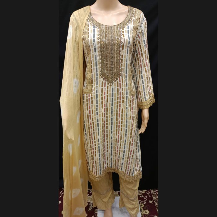 Be the first to review “Golden Yellow Printed Lacework Suit Suit 46” Cancel reply