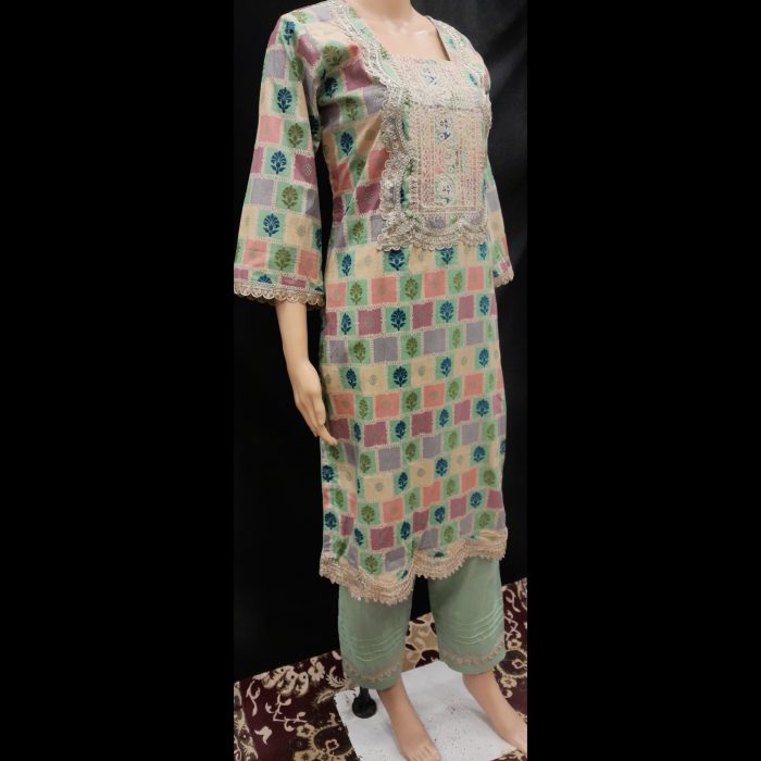 Fancy Neckline with Piping Finish: The elegant neckline, enhanced with embroidery, lacing and a touch of sophistication, ensures a refined look.