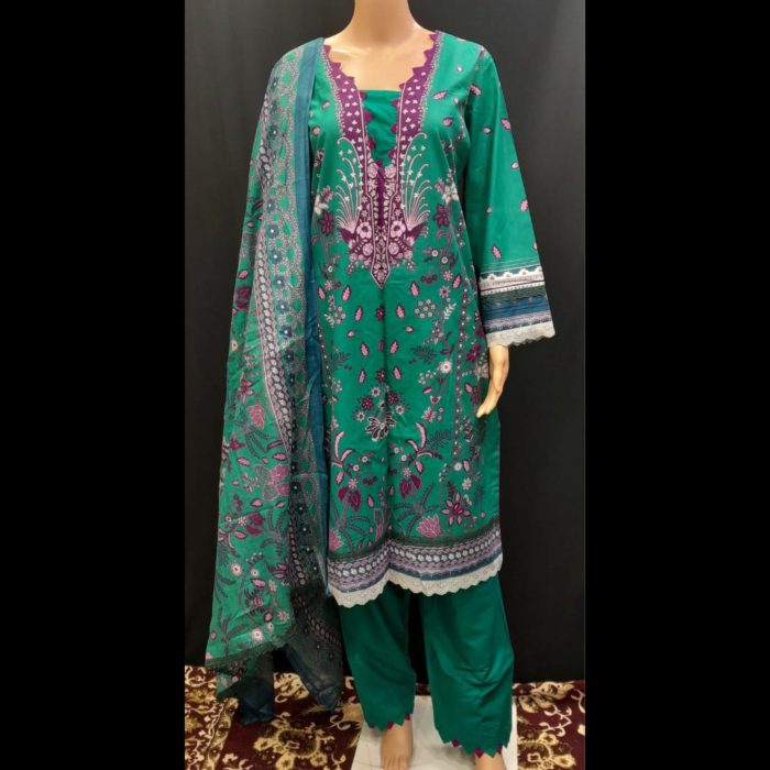 Elevate your style with this exquisitely designed Pakistani-style ready-to-wear suit, tailored to perfection for ultimate comfort and elegance. Crafted from premium-quality cotton and lawn fabric, this suit is lightweight, breathable, and ideal for festive occasions or casual outings alike.