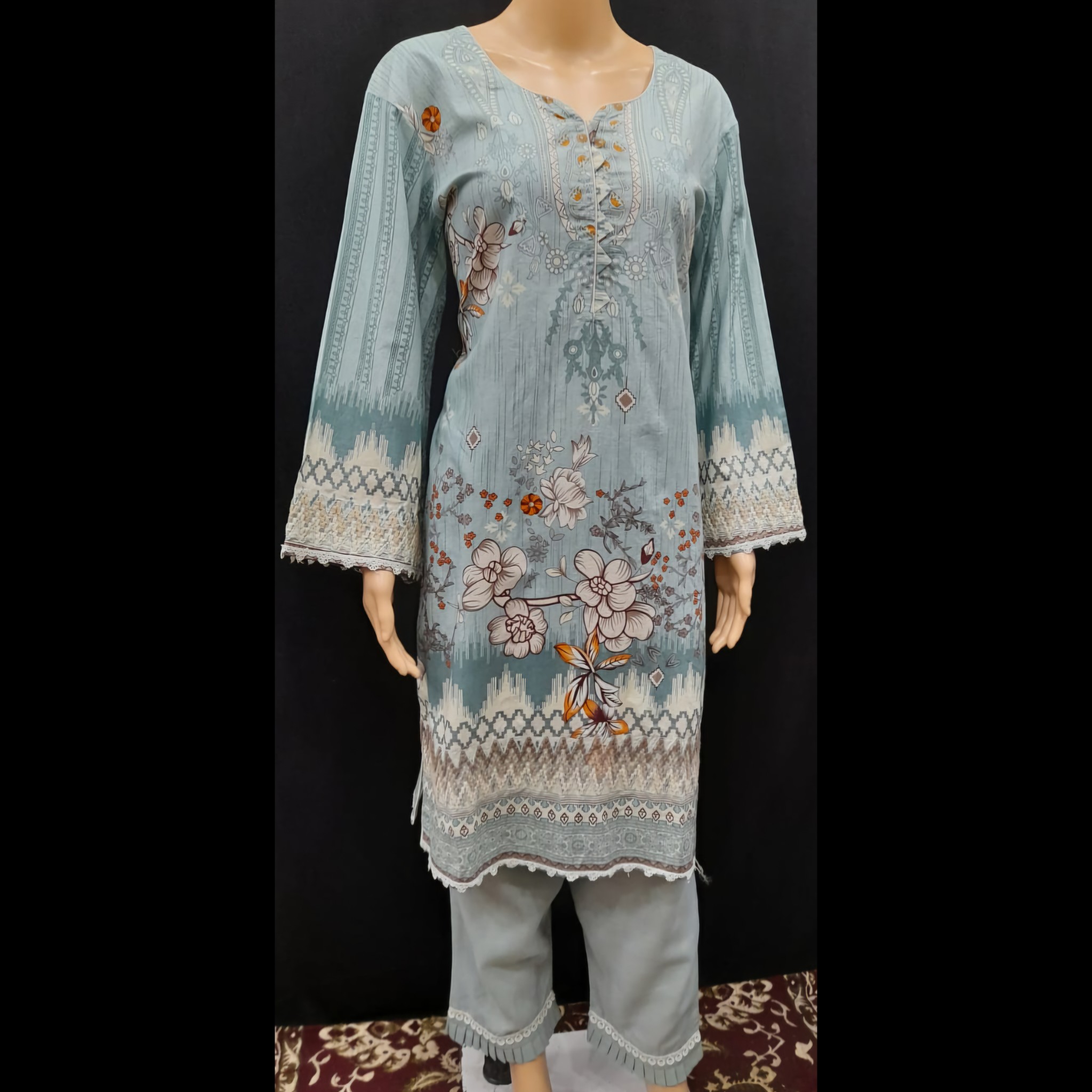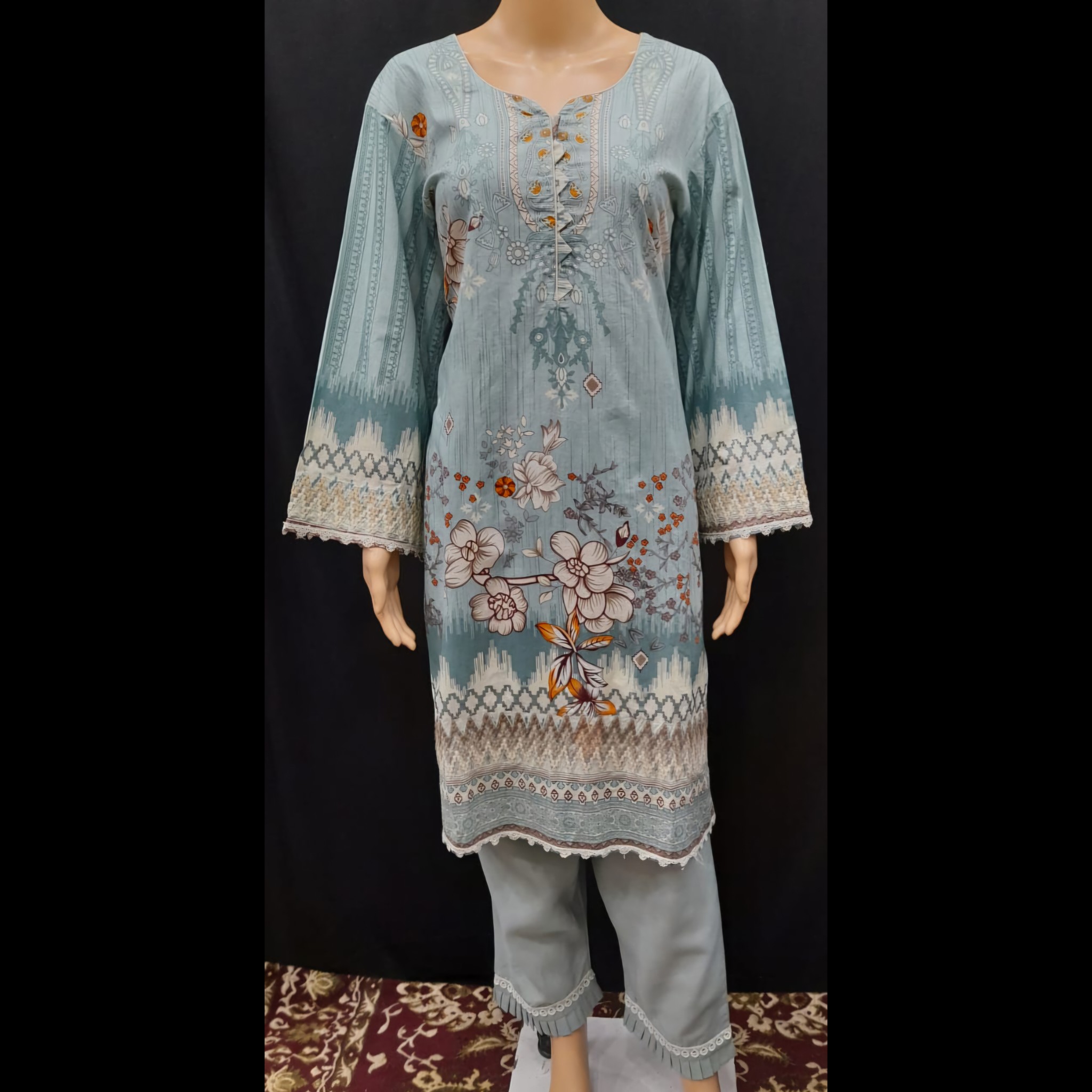 Elevate your style with this exquisitely designed Pakistani-style ready-to-wear suit, tailored to perfection for ultimate comfort and elegance. Crafted from premium-quality cotton and lawn fabric, this suit is lightweight, breathable, and ideal for festive occasions or casual outings alike.