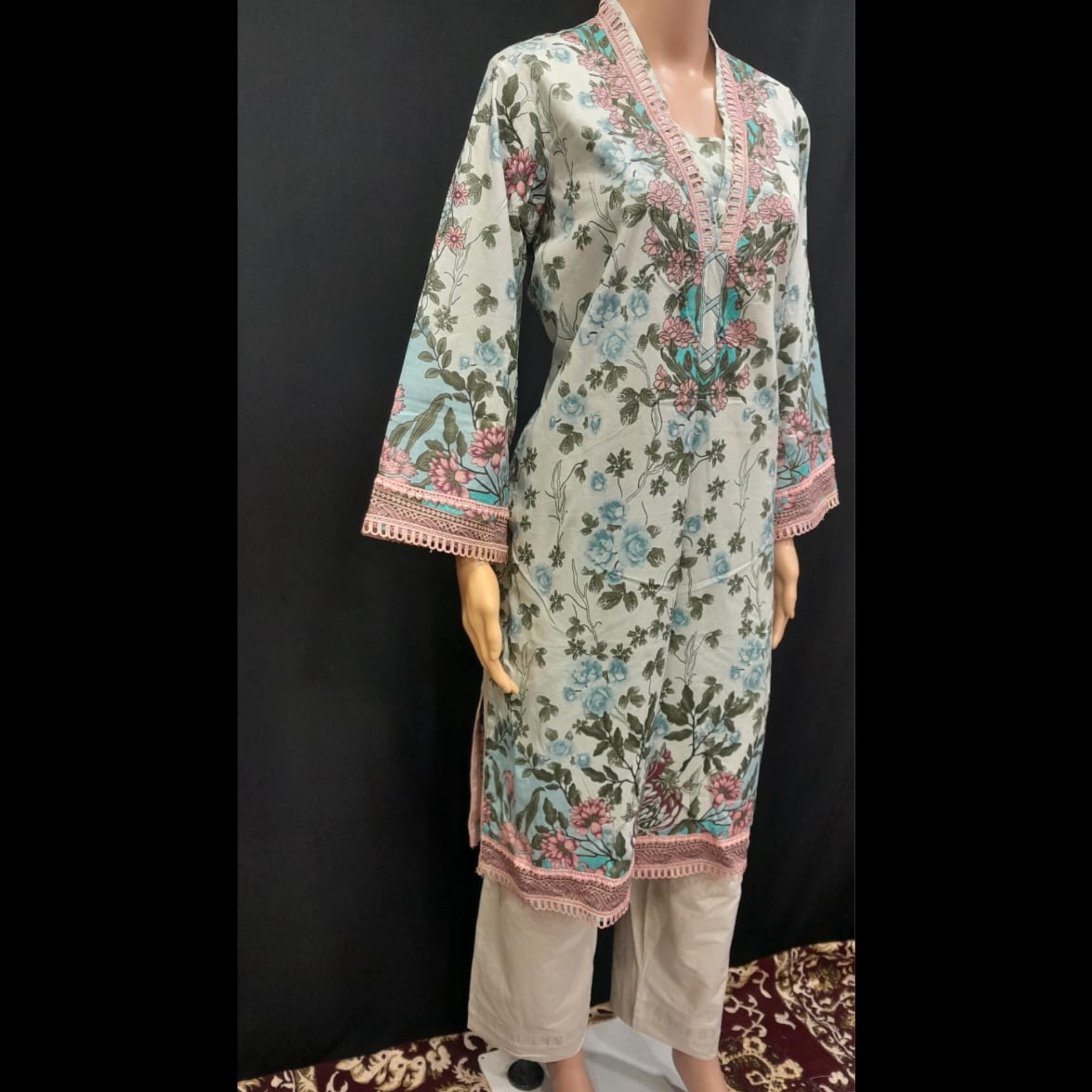 Be the first to review “Light Grey Cotton Printed Lacework Suit 44” Cancel reply