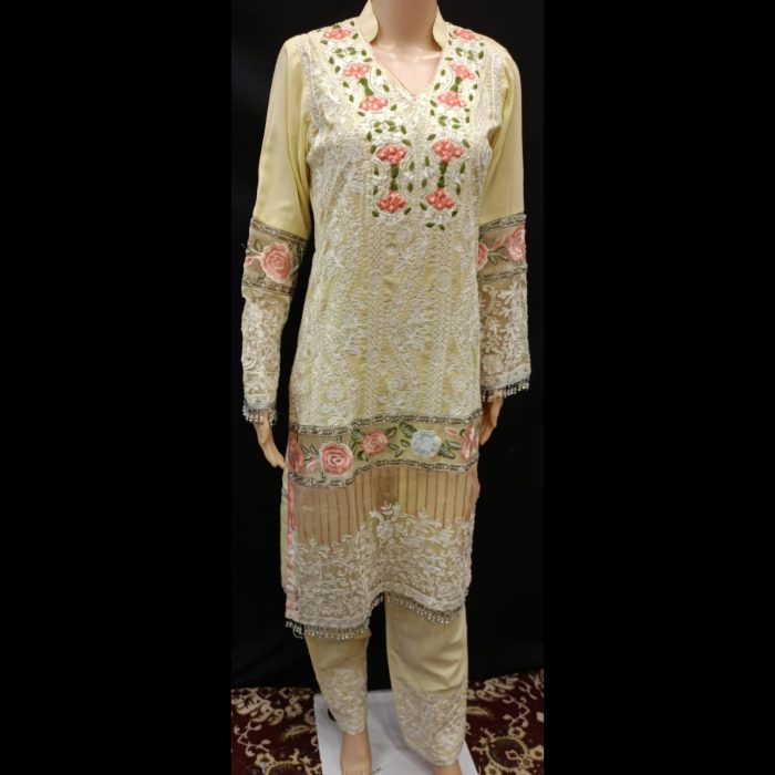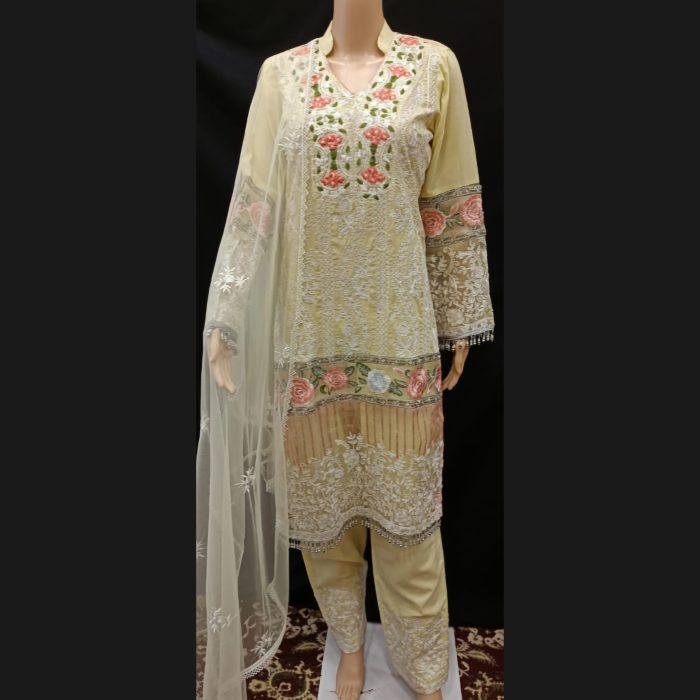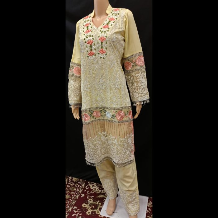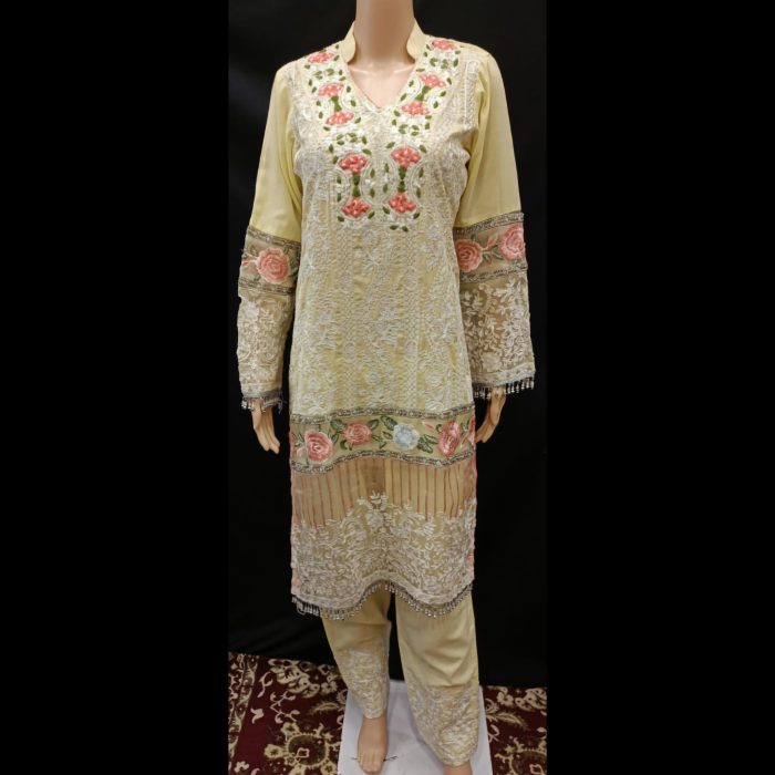 Light Yellow Cotton Embroidered Handwork Suit 40