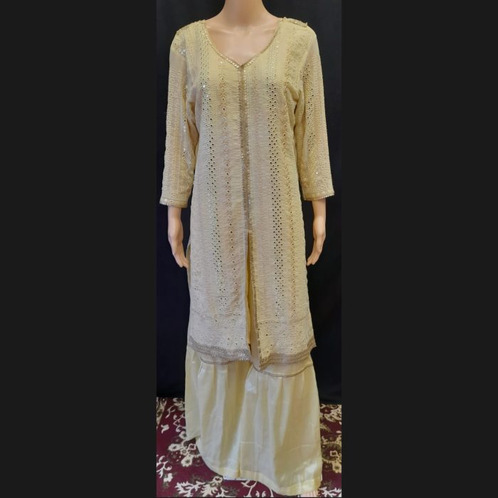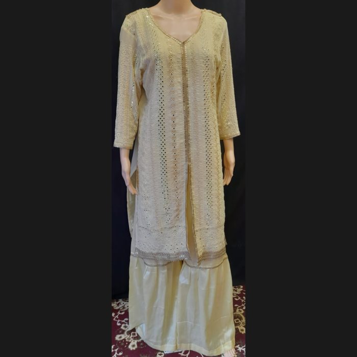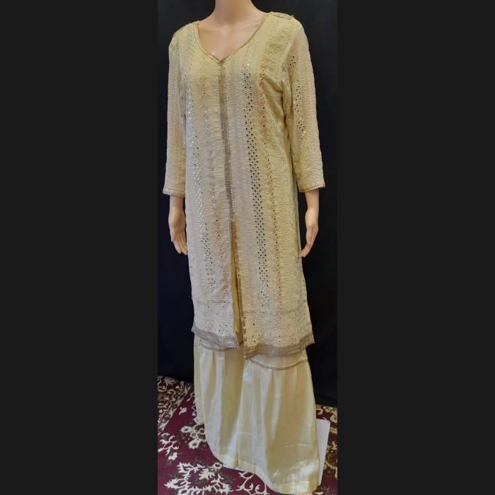 Light Yellow Embroidered Suit With Garara Pant 44