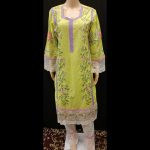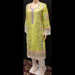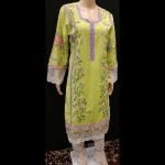 Lime Green Multicolored Embroidered Cotton Suit 42