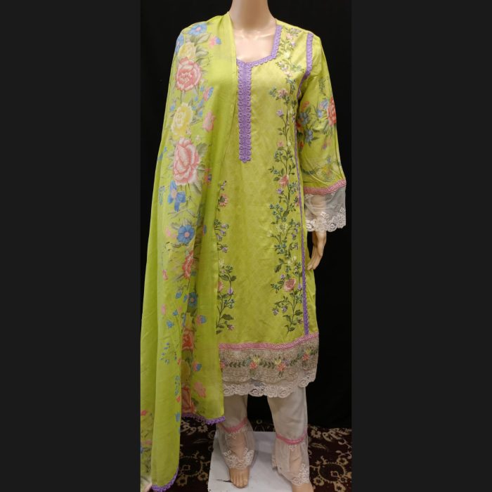 Elevate your style with this exquisitely designed Pakistani-style ready-to-wear suit, tailored to perfection for ultimate comfort and elegance. Crafted from premium-quality cotton and lawn fabric, this suit is lightweight, breathable, and ideal for festive occasions or casual outings alike.
