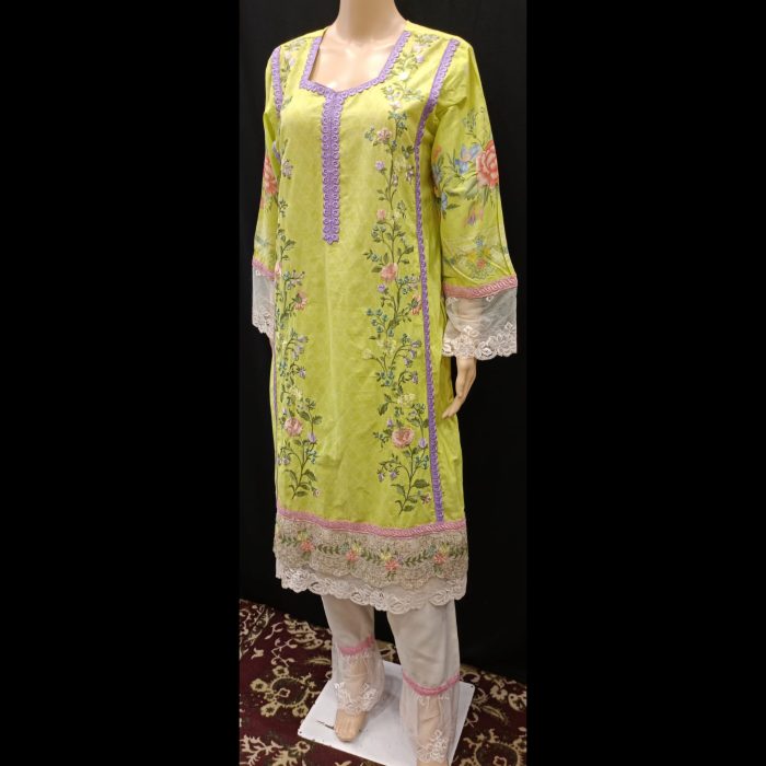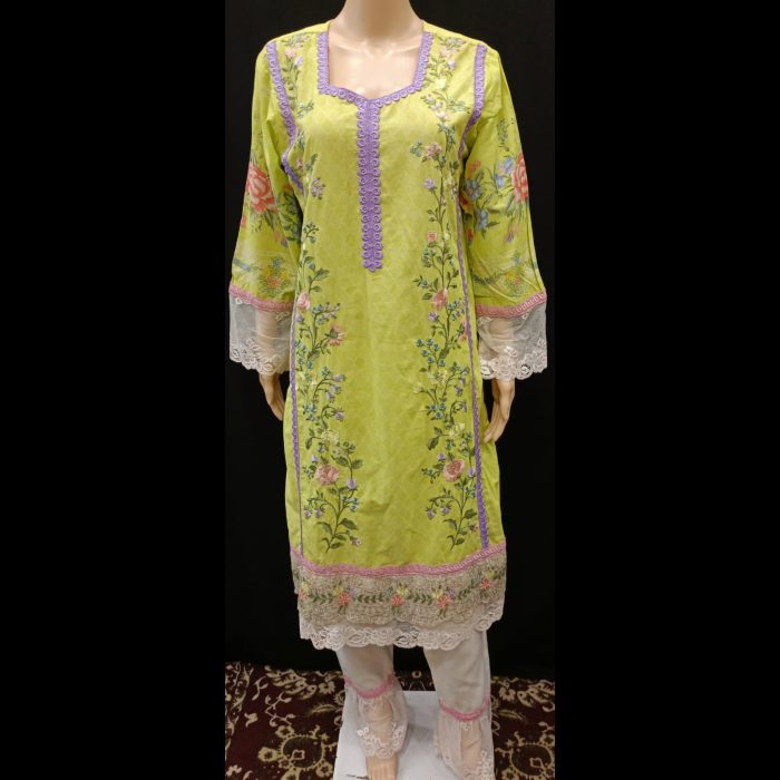 Be the first to review “Lime Green Multicolored Embroidered Cotton Suit 42”