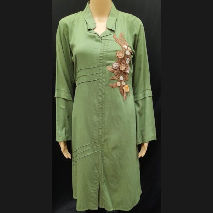 Available in sizes S to L, this tunic is tailored for a flattering fit that suits various body types. Pair it with slim pants, jeans, or leggings for a polished and stylish outfit perfect for day-to-night transitions, festive events, or casual gatherings. Embrace elegance and modern charm with this beautifully crafted moss green long tunic.