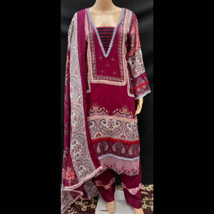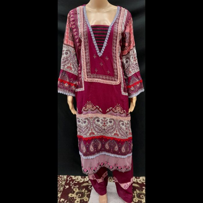 Elevate your style with this exquisitely designed Pakistani-style ready-to-wear suit, tailored to perfection for ultimate comfort and elegance. Crafted from premium-quality cotton and lawn fabric, this suit is lightweight, breathable, and ideal for festive occasions or casual outings alike.