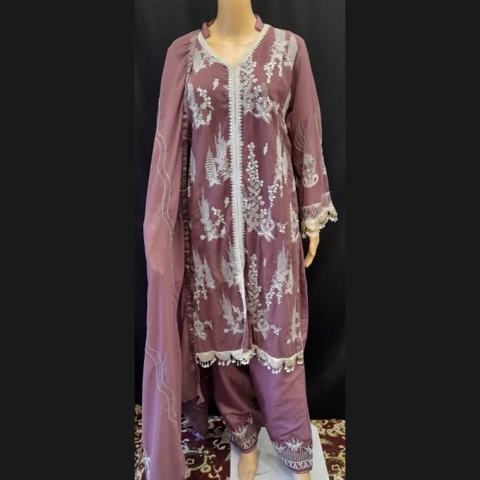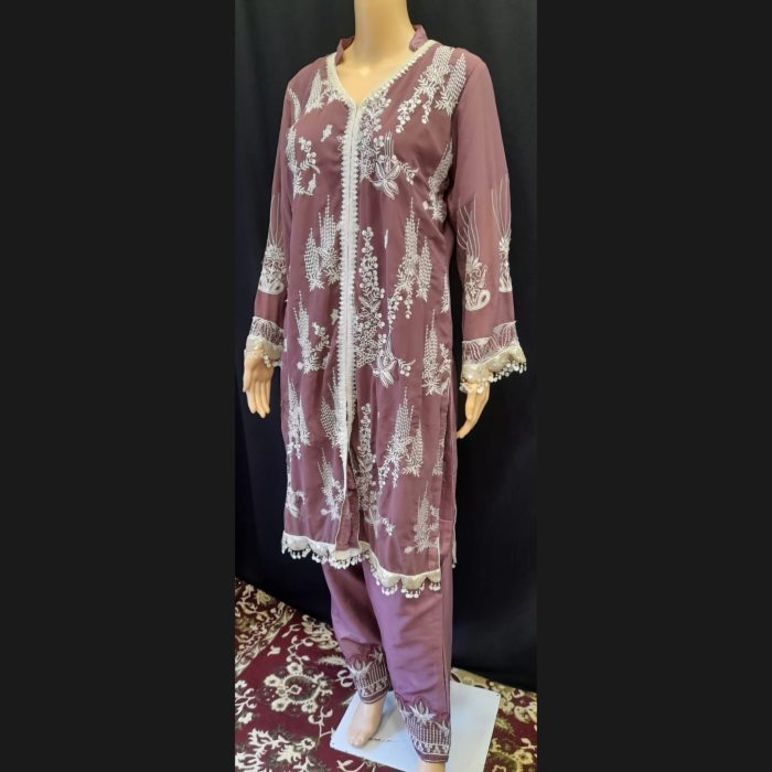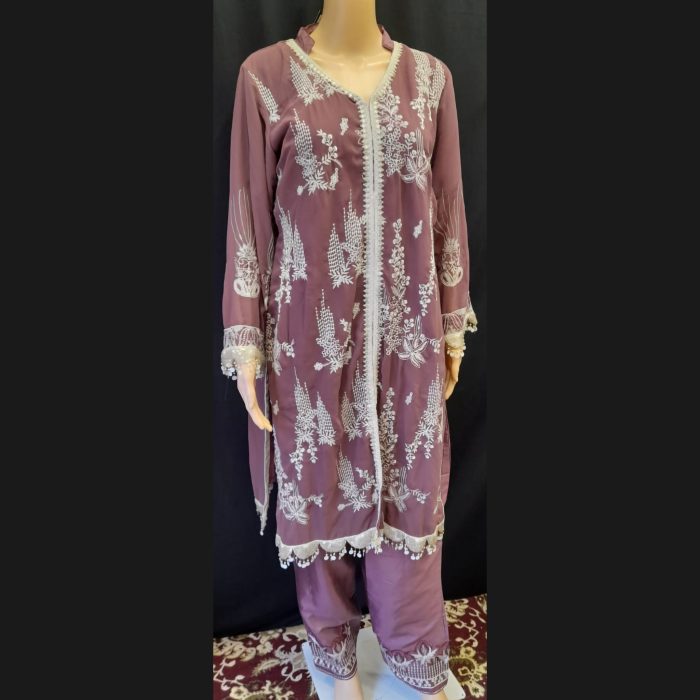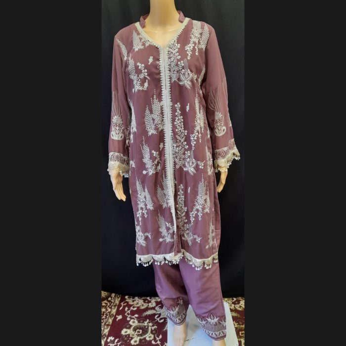 Mauve Taupe Embroidered Suit 46
