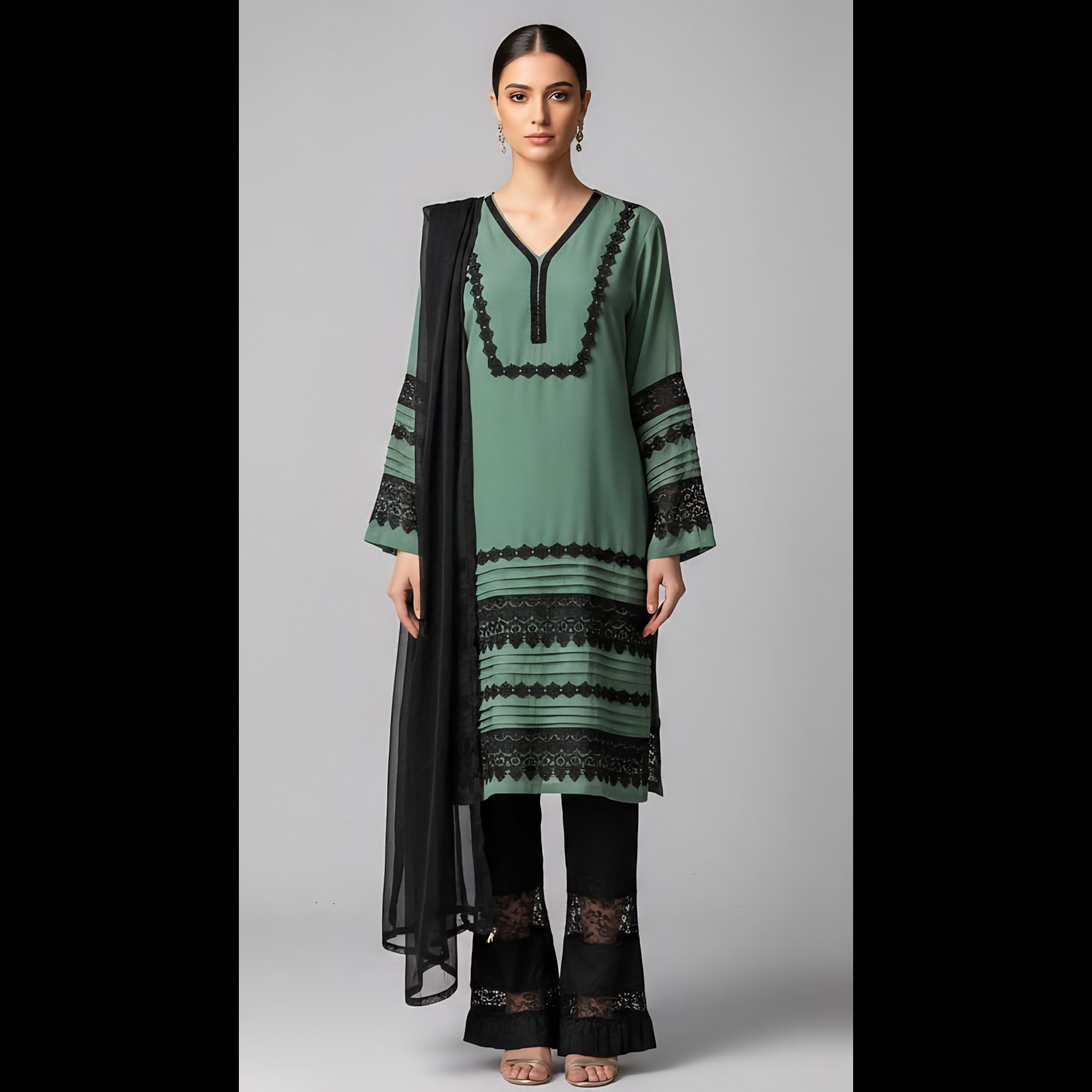 Elevate your style with this exquisitely designed Pakistani-style ready-to-wear suit, tailored to perfection for ultimate comfort and elegance. Crafted from premium-quality cotton and lawn fabric, this suit is lightweight, breathable, and ideal for festive occasions or casual outings alike.