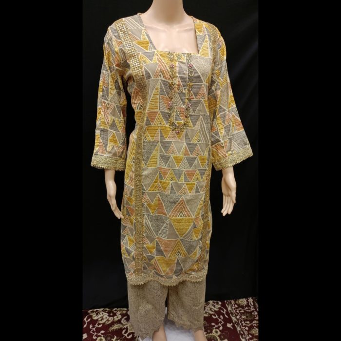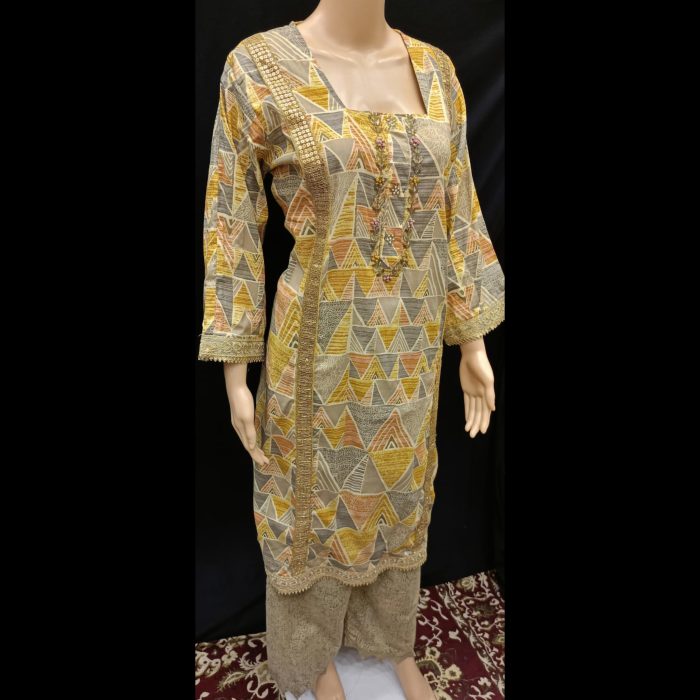 Be the first to review “Mustard And Gold Handwork Cotton Lacework Suit 48” Cancel reply