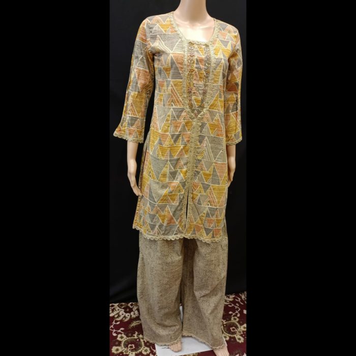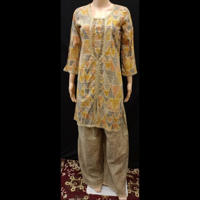 Be the first to review “Mustard And Gold Cotton Handwork Suit 38”
