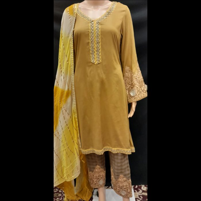 Be the first to review “Mustard Yellow Designer Suit 38”