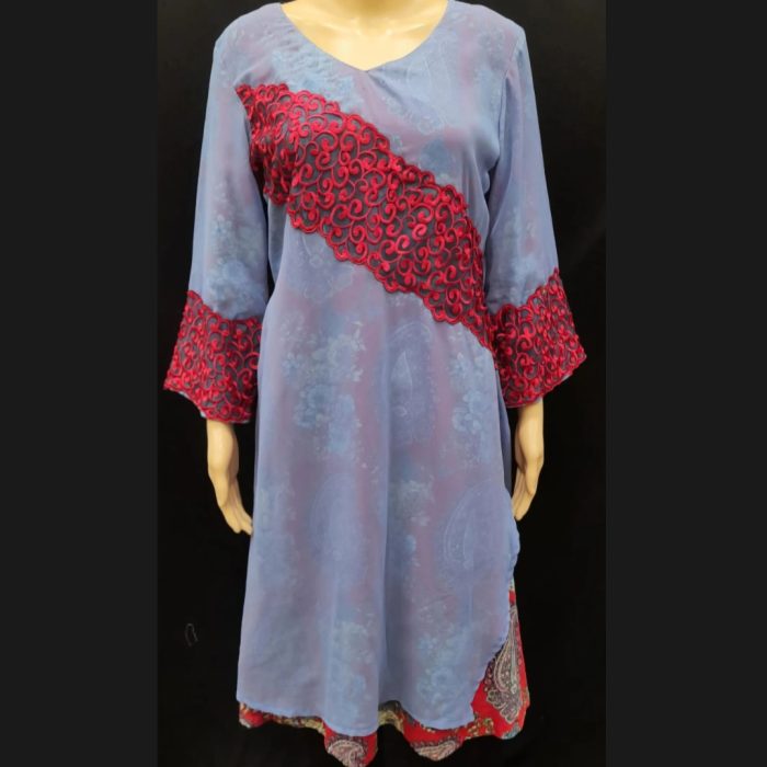Be the first to review “Muted Blue Long Tunic With A Band of Red Embroidery 44” Cancel reply
