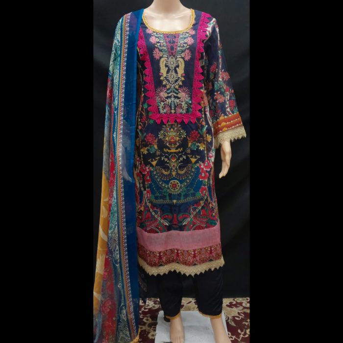Elevate your style with this exquisitely designed Pakistani-style ready-to-wear suit, tailored to perfection for ultimate comfort and elegance. Crafted from premium-quality cotton and lawn fabric, this suit is lightweight, breathable, and ideal for festive occasions or casual outings alike.