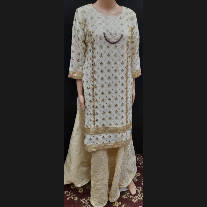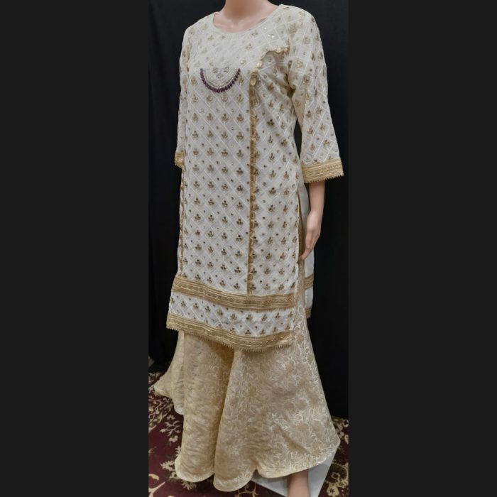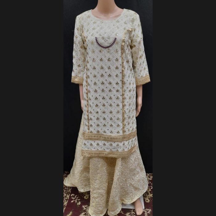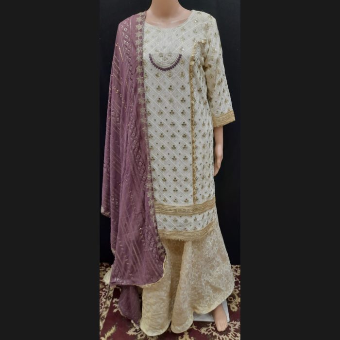 Off-white And Dark Mauve Embroidered Sharara Suit 40