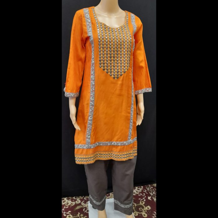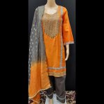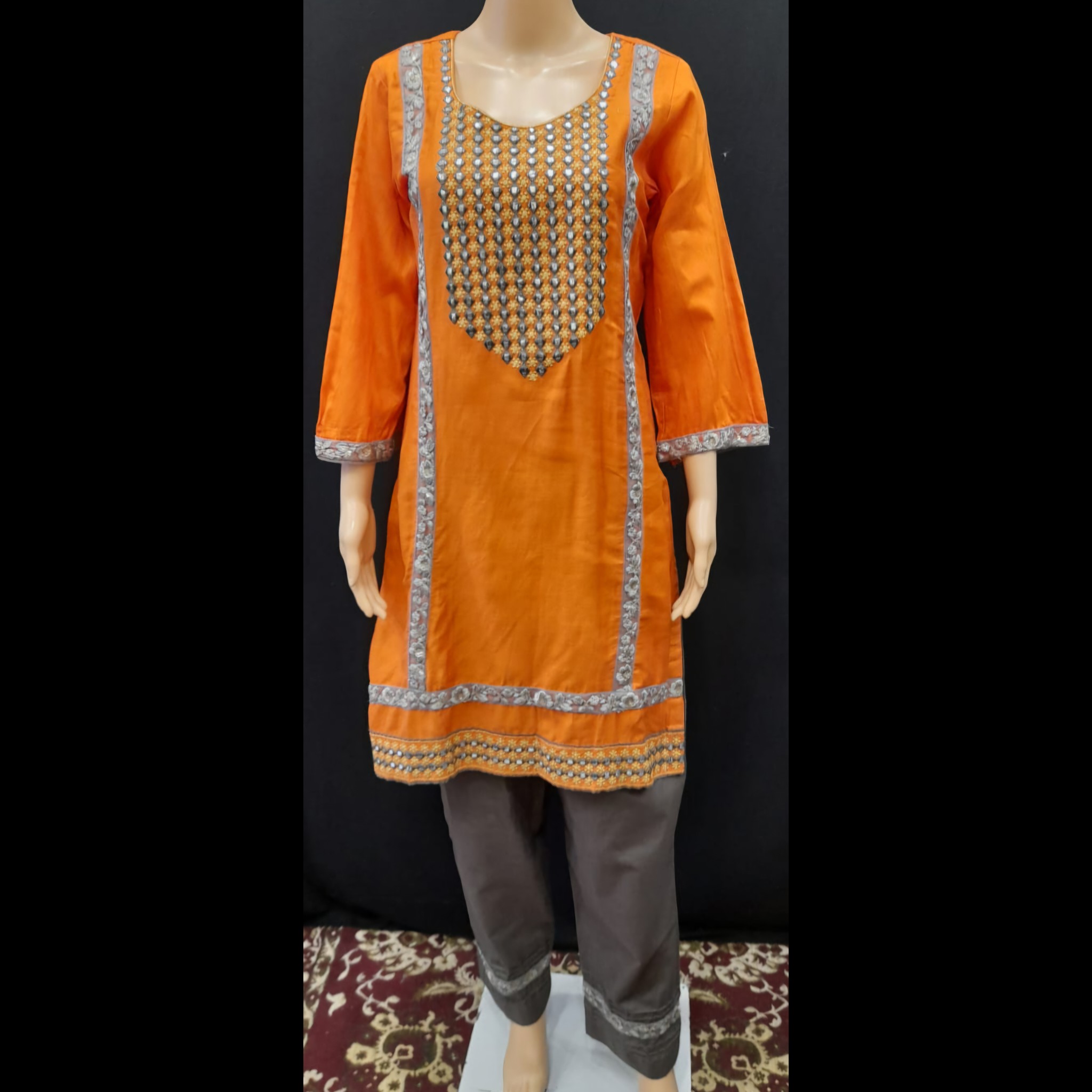 Rust Orange Mirrorwork Embroidered Cotton Suit 40