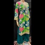 Be the first to review “Peacock Blue Multicoloured Embroidered Cotton Suit With Plazzo 40” Cancel reply