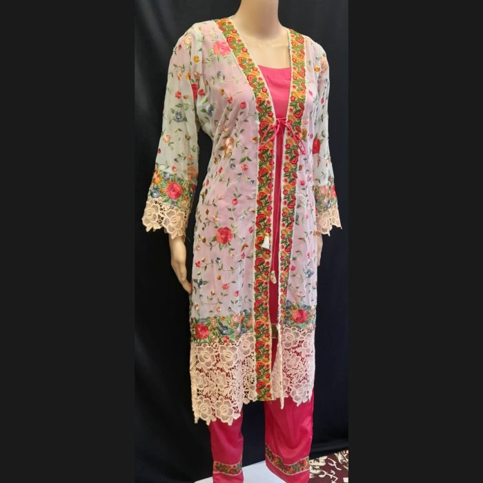 Be the first to review “Tomato Red Suit With Net Multicolored Embroidered Indowestern Jacket 42” Cancel reply