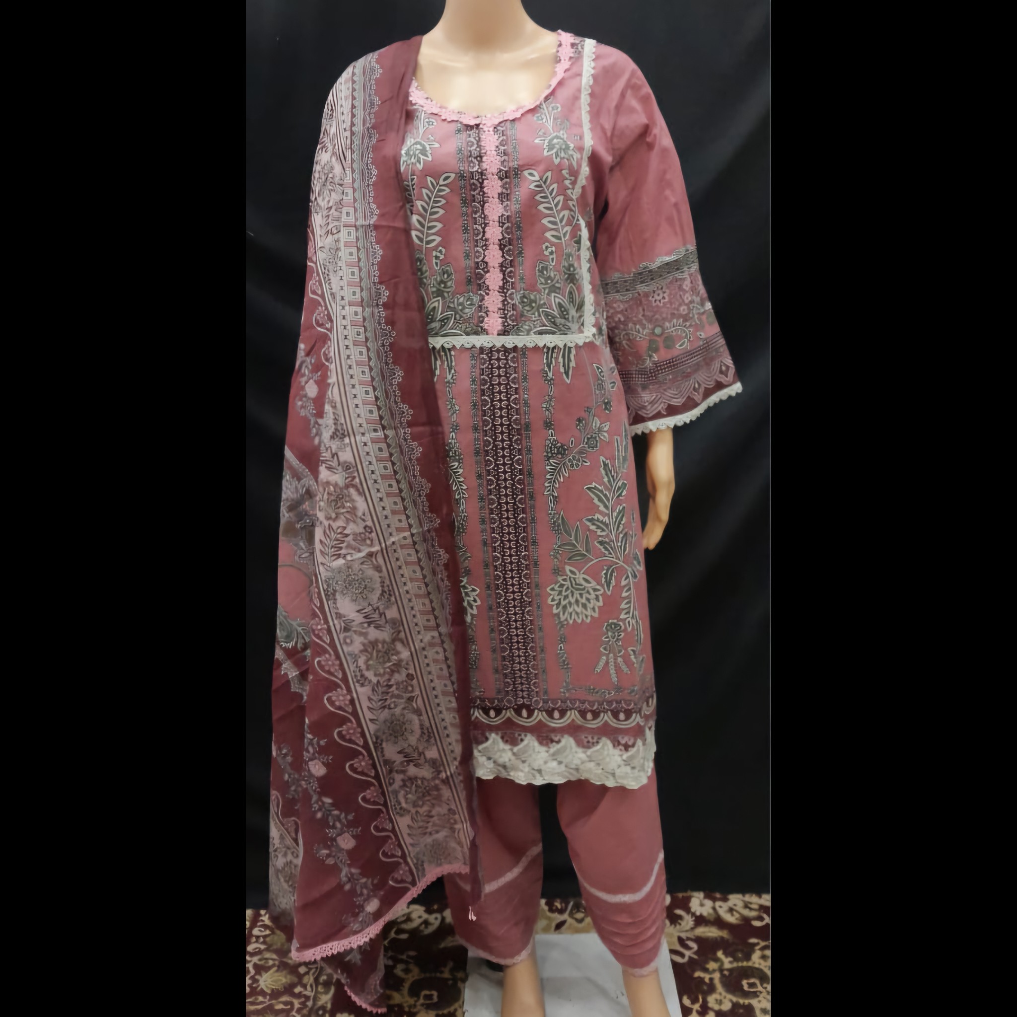 Be the first to review “Pink Cotton Embroidered Cutwork Suit 48” Cancel reply