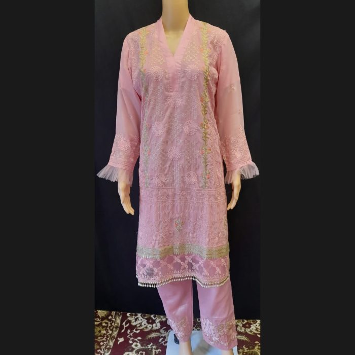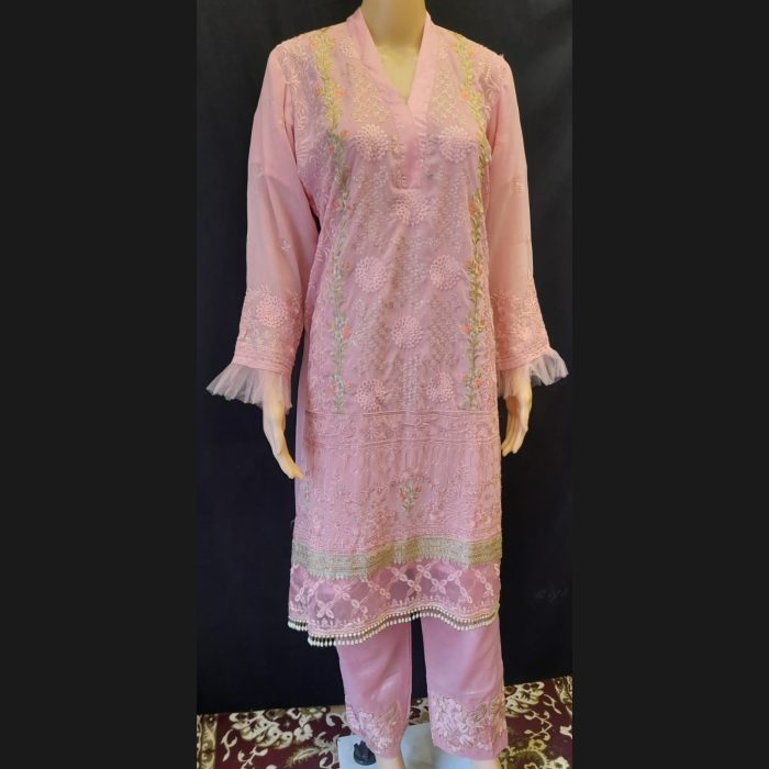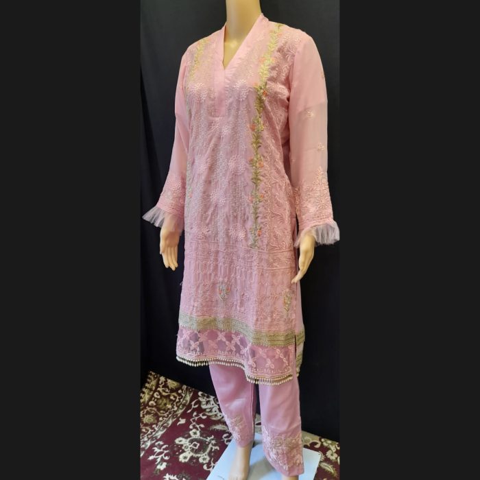 Pink Embroidered Suit With Frill Dupatta 44