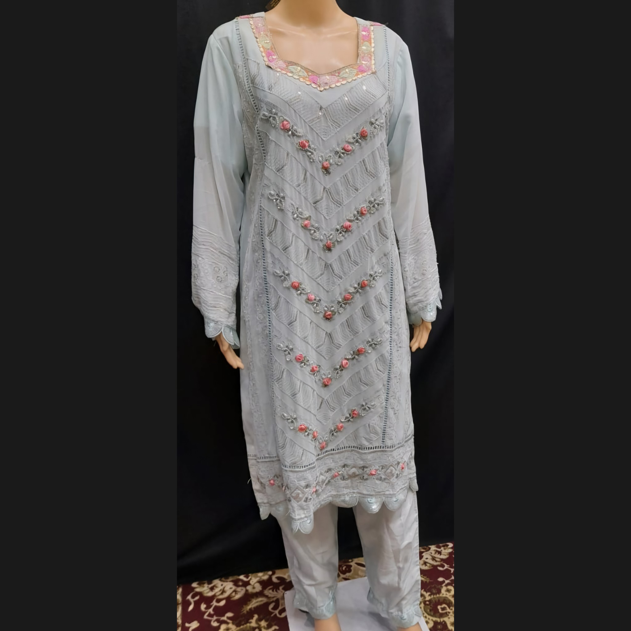 Powder Blue With 3D Flower Embroidery 48