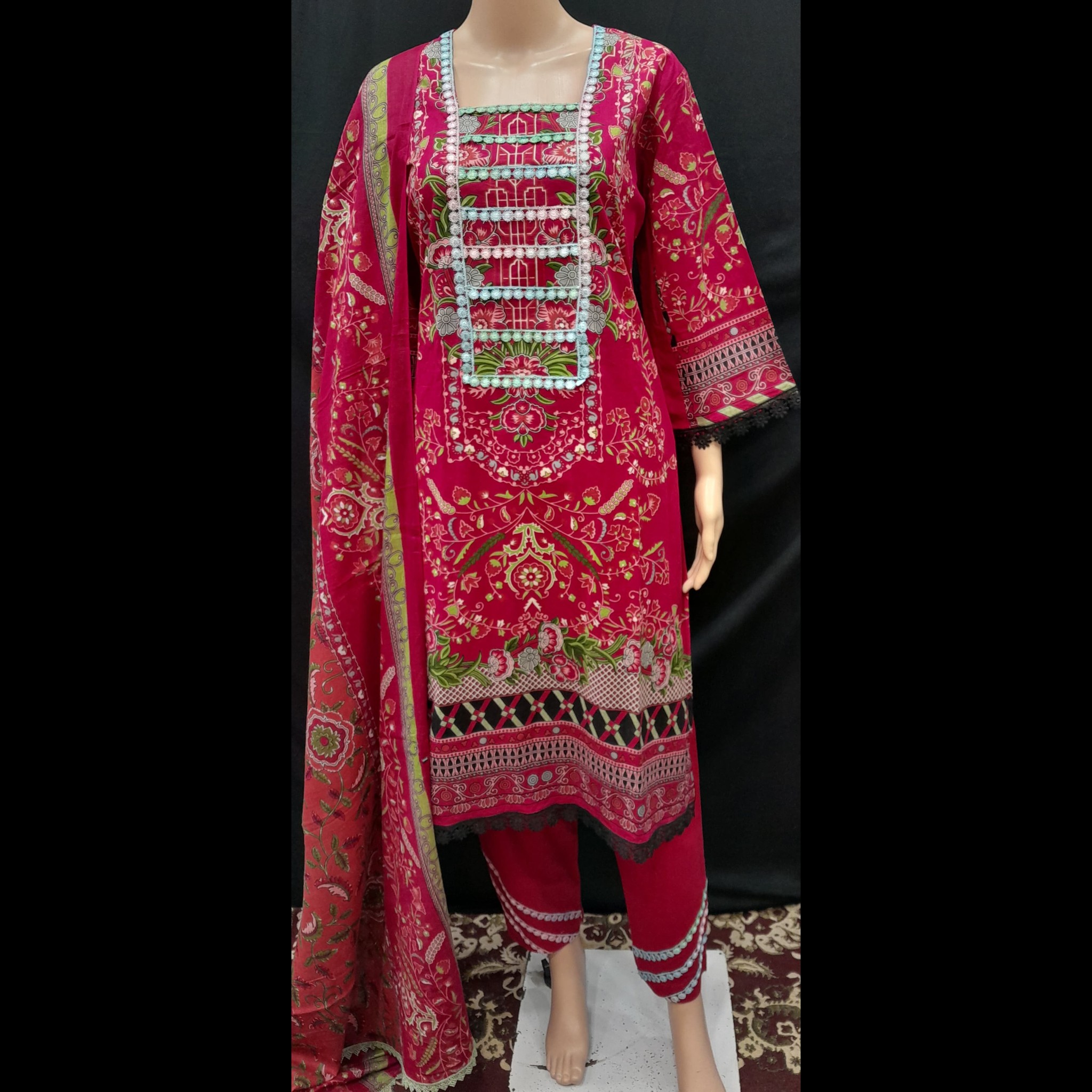 Elevate your style with this exquisitely designed Pakistani-style ready-to-wear suit, tailored to perfection for ultimate comfort and elegance. Crafted from premium-quality cotton and lawn fabric, this suit is lightweight, breathable, and ideal for festive occasions or casual outings alike.