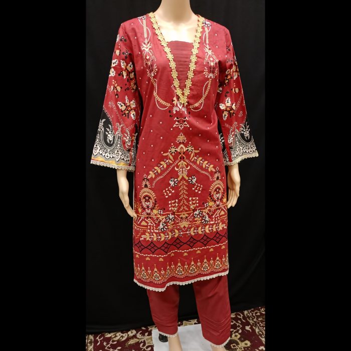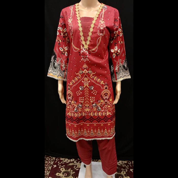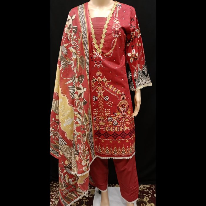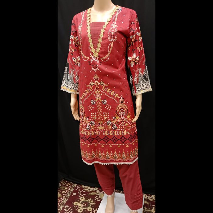 Elevate your style with this exquisitely designed Pakistani-style ready-to-wear suit, tailored to perfection for ultimate comfort and elegance. Crafted from premium-quality cotton and lawn fabric, this suit is lightweight, breathable, and ideal for festive occasions or casual outings alike.