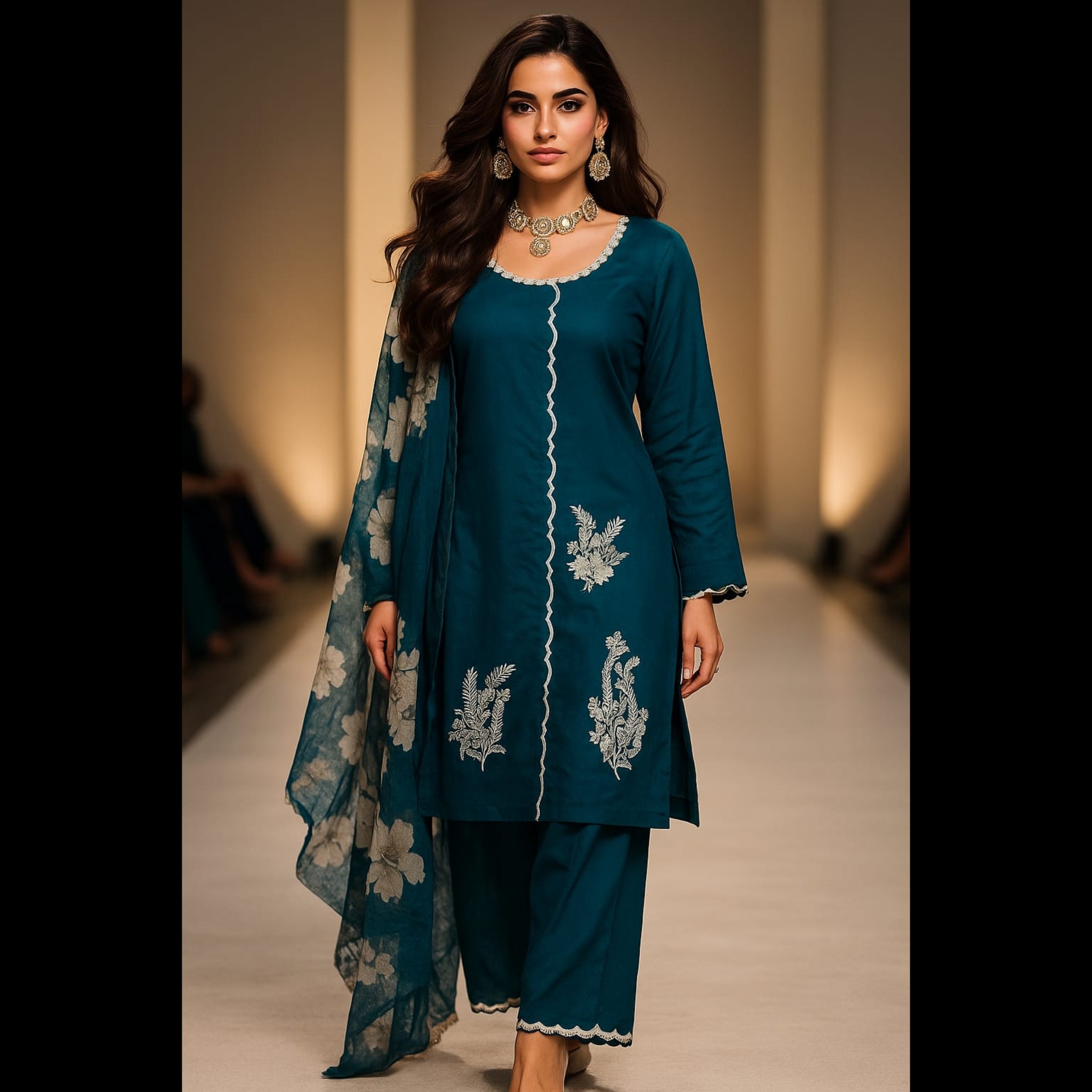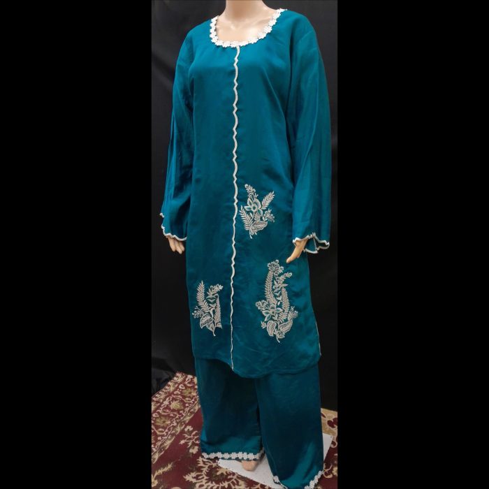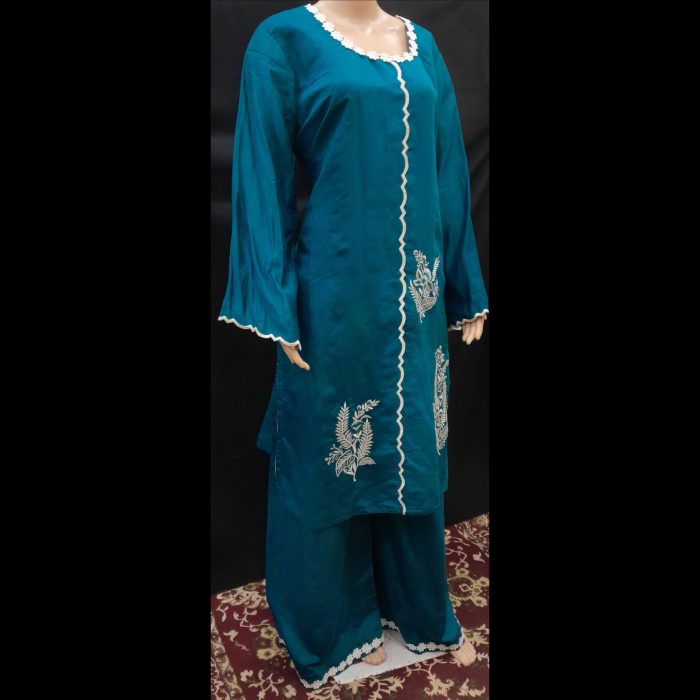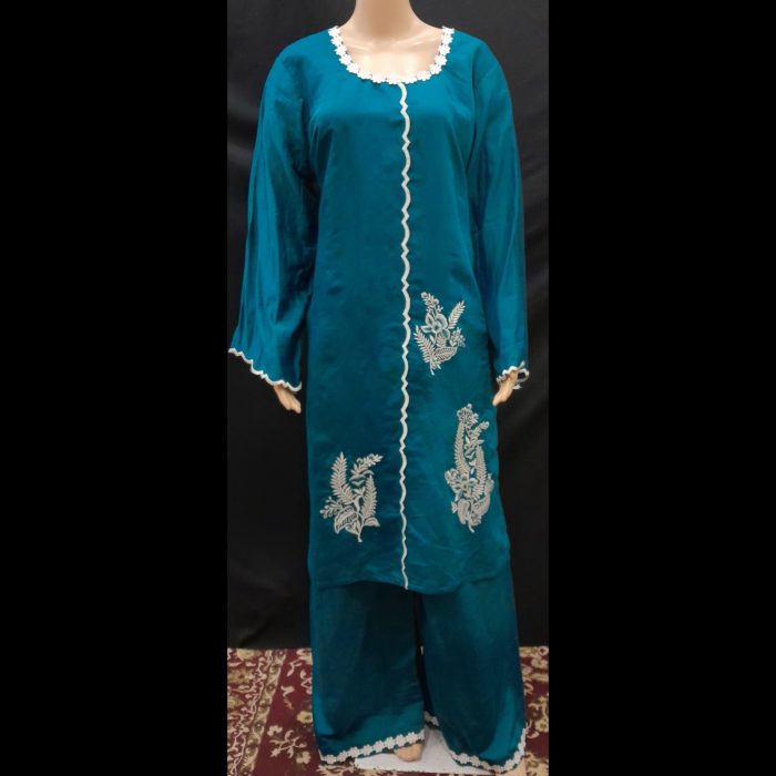 Be the first to review “Teal Blue And Off-white Pakistani Style Embroidered Designer Suit 50” Cancel reply