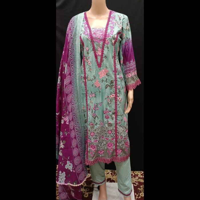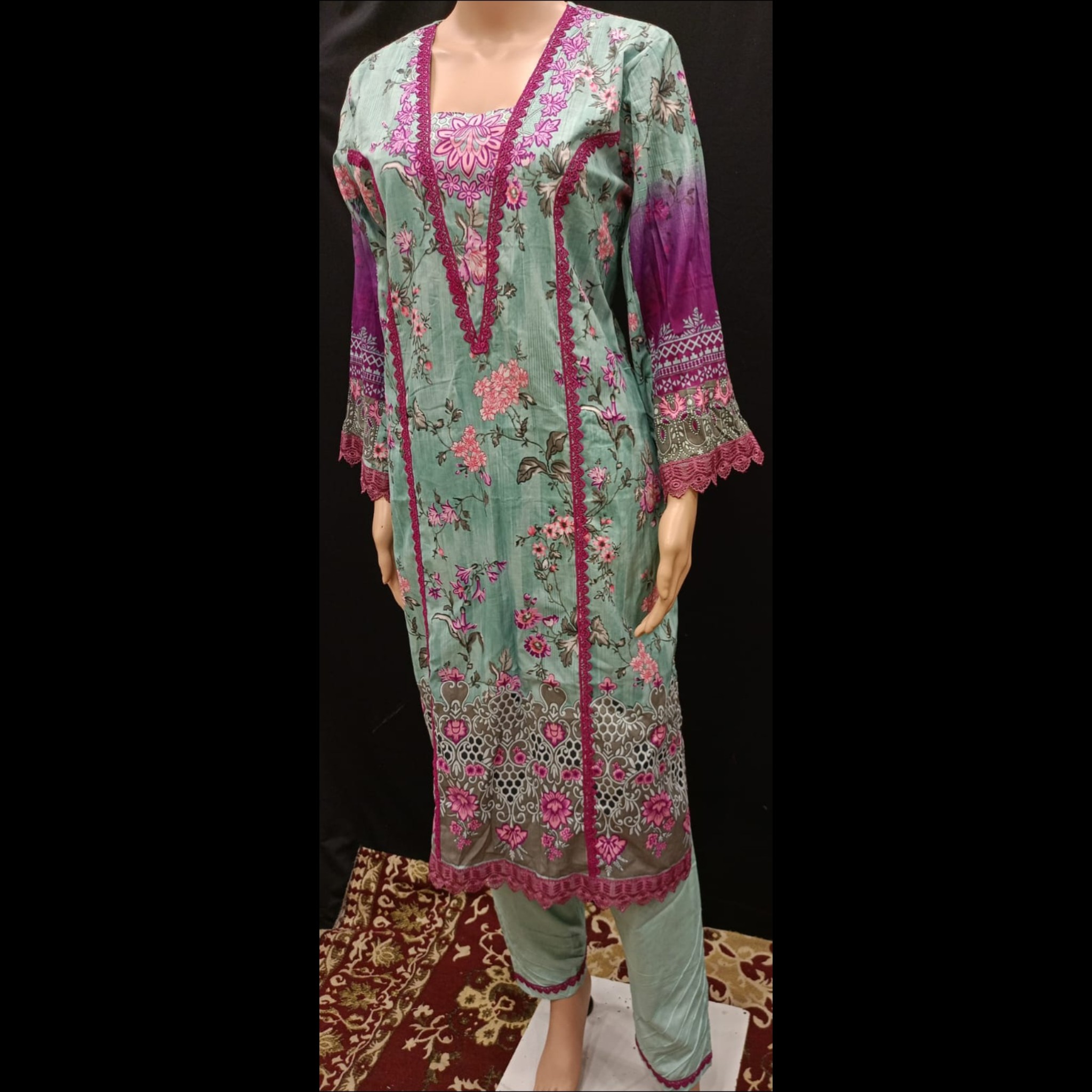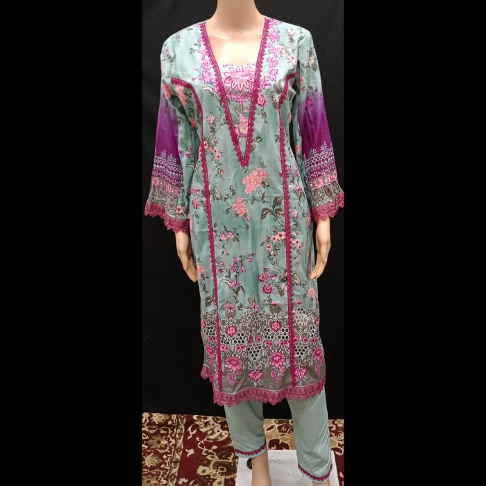 Elevate your style with this exquisitely designed Pakistani-style ready-to-wear suit, tailored to perfection for ultimate comfort and elegance. Crafted from premium-quality cotton and lawn fabric, this suit is lightweight, breathable, and ideal for festive occasions or casual outings alike.