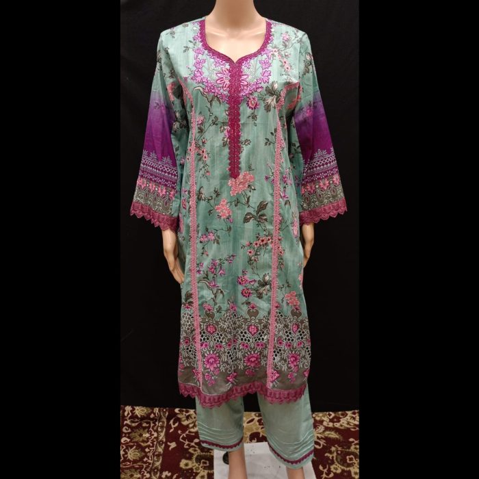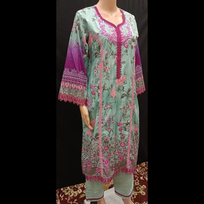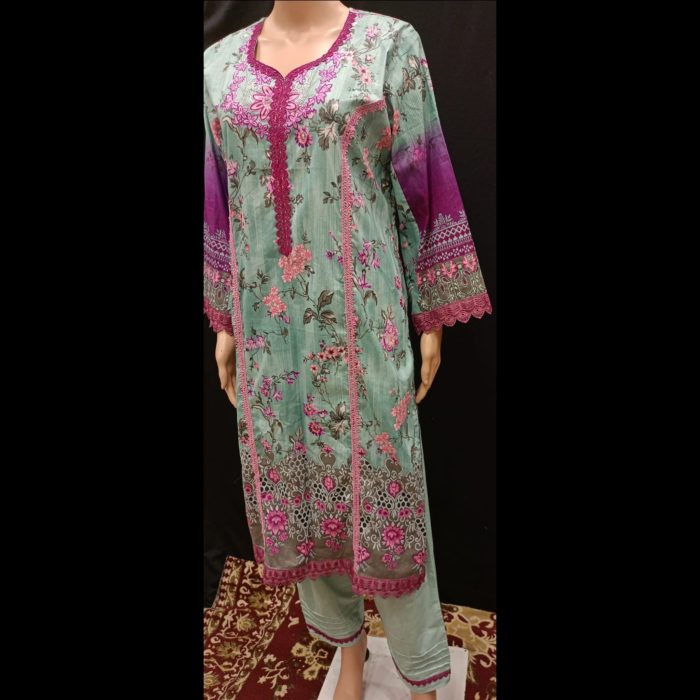 Elevate your style with this exquisitely designed Pakistani-style ready-to-wear suit, tailored to perfection for ultimate comfort and elegance. Crafted from premium-quality cotton and lawn fabric, this suit is lightweight, breathable, and ideal for festive occasions or casual outings alike.