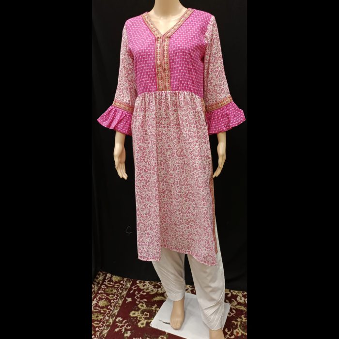 Fancy Neckline with Piping Finish: The elegant neckline, enhanced with piping and a touch of sophistication, ensures a refined look.