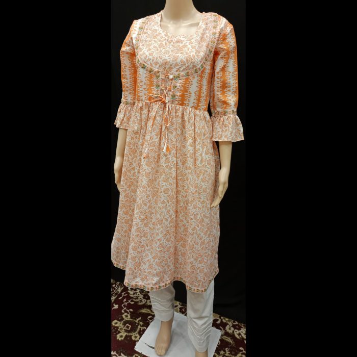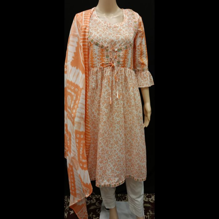 Orange And White Cotton Dori Suit 38